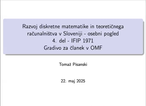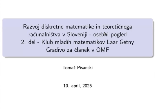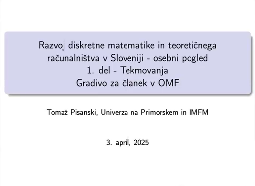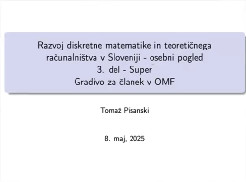 Serija predavanj prof. Tomaža Pisanskega o začetkih razvoja diskretne matematike in teoretičnega računalništva v Sloveniji.